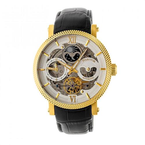 HERITOR Relógio masculino automático "Aries Skeleton" de aço inoxidável e couro, cor: preto (modelo: HERHR4406), Ouro/Prata, alça