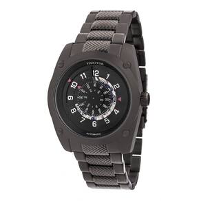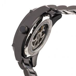 Caixa preta em aço inoxidável com pulseira preta em aço inoxidável. Moldura fixa em aço inoxidável preta. Mostrador preto com marcadores de hora numeral árabe. O disco do meio representa minutos, dentro do disco representa segundos. Tipo de discagem: Analógico. Movimento automático com reserva de marcha de 36 horas. Cristal mineral resistente a riscos. Caixa transparente de volta. Forma da caixa redonda, tamanho da caixa: 43 mm, espessura da caixa: 15 mm. Largura da banda: 24 mm. Dobre o fecho de implantação do botão de pressão. Resistente à água a 100 metros / 330 pés. Funções: hora, minuto, segundo. Estilo relógio vestido. Variações de item: HRT-HR7402. Relógio masculino Heritor Daniels automático mostrador preto HR7402.