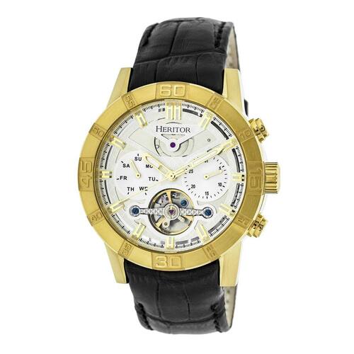 Heritor Relógio automático masculino 'Hannibal semi-esqueleto' movimento automático de aço inoxidável e couro, cor: preto (modelo: HERHR4103)