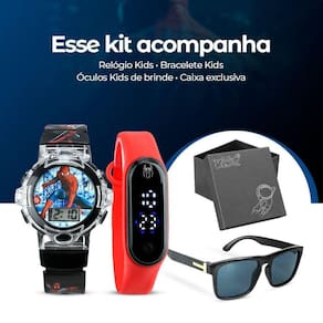 - 1 Relógio Digital em Formato Bracelete do Homem-Aranha: Um relógio impressionante em formato de bracelete, com o emblema do Homem-Aranha e detalhes temáticos. Perfeito para os pequenos heróis