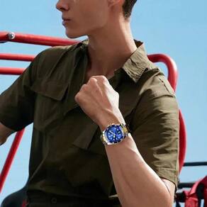 Descubra o relógio de pulso que é um verdadeiro emblema do luxo e sofisticação. Este magnífico relógio de quartzo é o acessório ideal para aqueles que valorizam a precisão no tempo, enquanto fazem uma declaração de estilo ousada. Com um design robusto e sofisticado, ele se destaca em qualquer pulso, tornando-se um companheiro indispensável para todas as ocasiões, do casual ao formal.