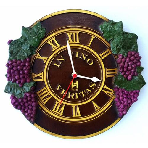 Relógio Horário Grande In Vino. É um Relógio ideal para amantes de vinho. Seu miolo com os dizeres: In Vino Veritas que é uma frase em Latin. A tradução literal é, A verdade é o Vinho. Os marcadores são em Números Romanos. O Relógio decorativo é confeccionado em fibra de vidro, simula de forma realista a madeira de carvalho. Uma peça funcional e muito bonita. Ideal para decoração de bares, churrasqueiras, espaço Gourmet, salão de festas e decoração em casa. Tem o diâmetro de cerca de 42 cm de diâmetro por 5 de altura. Essa peça é para ser pendurada na parede. Produzida artesanalmente, uma a uma é pintada nos mínimos detalhes à mão com tintas de alta qualidade e cores vibrantes. Máquina do relógio com a qualidade Quatz. O resultado é um presente de indiscutível qualidade e único Peça colecionavel e decorativa. Decore com estilo e bom gosto ambientes como estúdios, barzinhos, restaurantes, salas e churrasqueiras. É um verdadeiro presente para ser lembrado!