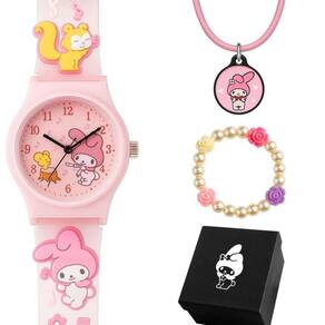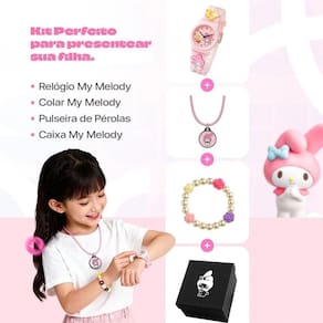 Kit completo infantil: relógio, colar e pulseira combinando para visual harmonioso.
