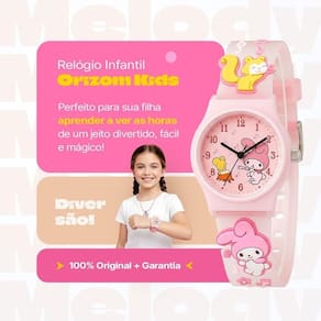 Conteúdo da embalagem: 1 relógio infantil analógico, 1 colar infantil emborrachado com pingente, 1 pulseira infantil colorida, 1 caixa premium