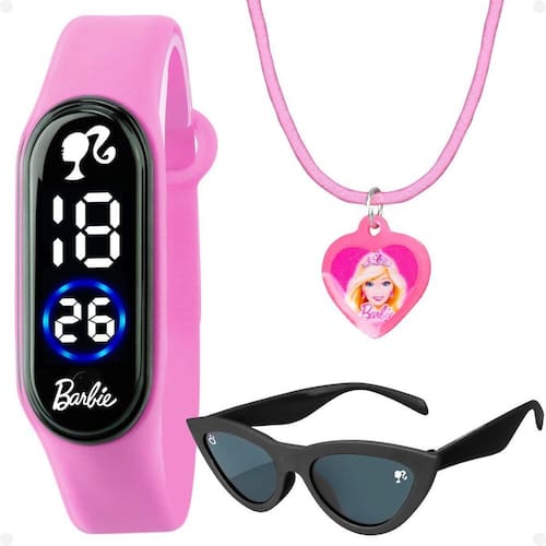Relogio Infantil Barbie Digital + Oculos Proteção Uv Menina Criança Prova Dagua Presente Kit Estilo e Diversão Barbie para Crianças a partir de 5 Anos