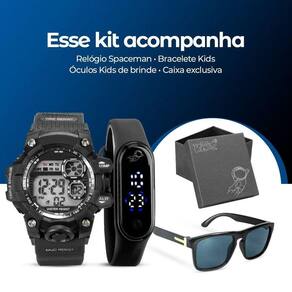 Relogio infantil digital prova dagua + caixa + oculos sol adolescente alarme qualidade premium preto Conjunto estiloso orizom kids para meninos: relógio, óculos e caixa exclusiva