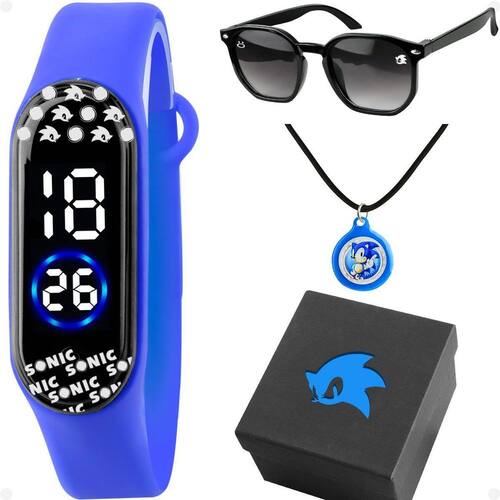 Relogio infantil digital sonic + oculos sol + colar + caixa kids azul menino led qualidade premium Kit Relógio Digital Infantil Orizom Kids com Óculos de Sol, Colar e Pingente do Sonic + Caixa Premium