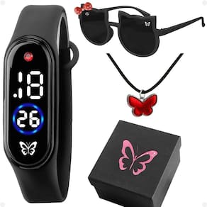Relogio infantil menina digital + colar + oculos sol garota social proteção uv prova dagua criança kit Orizom Kids: Relógio Digital Infantil com Óculos de Sol, Colar e Caixa Premium Tema Borboleta Encante sua princesa com o Kit Orizom Kids, um conjunto encantador e funcional, perfeito para presentear meninas a partir de 5 anos. Com uma temática adorável de borboletas, este kit reúne acessórios elegantes e práticos, ideais para o uso diário e para ocasiões especiais. O conjunto inclui: - Relógio Digital Infantil Orizom Kids: com pulseira ajustável de silicone, cor preta, strass vermelha e desenho de borboleta no display. - Óculos de Sol Infantil Orizom Kids: e hastes pretas, detalhes rosa, proteção UV e charmosa temática de borboleta. - Colar Infantil ajustável: cor preta, confeccionado em materiais sintéticos duráveis para o uso diário. - Pingente em formato de borboleta, disponível nas cores vermelha ou rosa conforme disponibilidade , em metal resistente. - Caixa Ultra Premium: detalhes de borboleta rosa, perfeita para armazenar e presentear, mantendo tudo organizado com elegância. Características do produto: - Relógio digital infantil com pulseira de silicone ajustável. - Óculos de sol infantil com proteção UV, em acetato. - Colar preto, ajustável, fabricado em materiais sintéticos. - Pingente de borboleta em metal nas cores vermelha ou rosa. - Caixa premium preta com desenho de borboleta rosa. - Recomendado para crianças a partir de 5 anos. Este kit é a união perfeita entre estilo e praticidade, ideal para meninas que adoram acessórios encantadores. Surpreenda sua pequena com esse conjunto irresistível e único