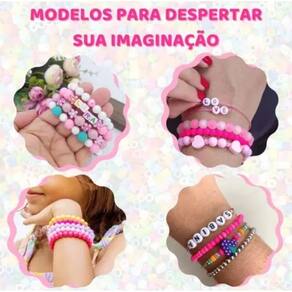 -Pulseira com miçangas e pérolas coloridas produto artesanal feito no fio de silicone n ° 8