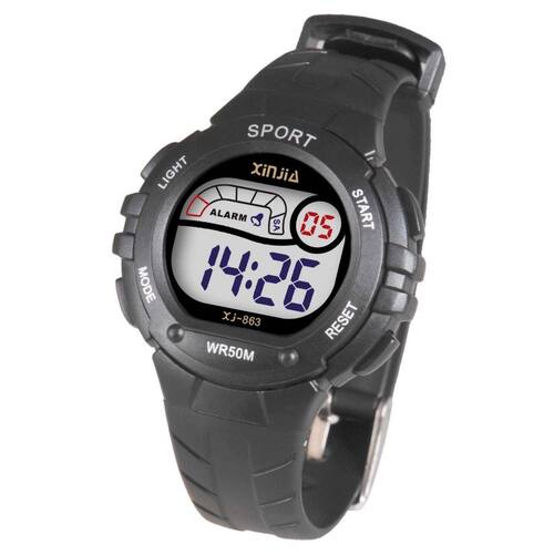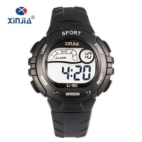 Relógio Infantil Menino Menina Xinjia XJ863 Espotivo Digital Cor: Preto/Preto Relógio Infantil Menino Menina Xinjia XJ863 Espotivo Digital Todos nossos relógios acompanha caixa e possui . Características: Marca: Xinjia Digital: Sim Horário: Dois Horários Mostra o dia da semana: Sim Mostra o dia do mês: Sim Despertador: Sim Cronômetro: Sim Luz: Sim Resistente à água: Sim 5ATM - Respingos: Sim - Chuva: Sim - Lavar o carro: Sim - Natação: Sim - Mergulho: Não Tipo de feche: Fivela Simples Material da caixa: Plástico Material da pulseira: Borracha Característica do vidro: Acrílico Alimentação: Bateria : 3 meses Conteúdo da Embalagem: 01 Relógio 01 Embalagem