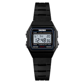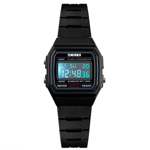 Relógio Infantil Skmei Digital 1460 Preto com calendário, despertador, dia da semana, dia do mês, cronômetro, cronômetro e luz. Resistência à água de 5 ATM, permitindo chuvas, respingos e breves imersões. Vidro de acrílico e fecho de fivela. e com de 12 meses. Ficha Técnica: Marca: Skmei Modelo: 1460 Cor: Preto Calendário: Sim Despertador: Sim Mostra dia da semana: Sim Iluminação: Sim, na cor verde Mostra dia do mês: Sim Material da Pulseira: Plástico Tipo de fecho: Fivela Formato da Caixa: Quadrado Tamanho da Caixa: Pequeno Diâmetro da caixa: 24,9 mm Espessura da caixa: 9,2 mm Largura da pulseira: 13 mm Comprimento máximo da pulseira: 20 cm Resistente à água: 5ATM Gênero: Infantil : 12 Meses Embalagem Contém: 01 Relógio Infantil Skmei Digital 1460 Preto 01 Embalagem Skmei 01 Certificado de 01 Manual