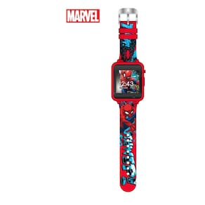 Brinquedo de relógio inteligente Accutime Marvel Spider-Man Red com tela sensível ao toque para meninos, meninas e crianças pequenas — câmera selfie, jogos didáticos, alarme, calculadora, pedômetro e muito mais (modelo: SPD4588AZ)
