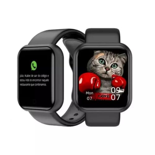 Confira todos os detalhes: • Disponíveis nas cores Preto e Rosa • Compatível com iOS e Android • Melhor custo benefício do mercado • Tela com botão Touch • Receba notificações das Redes Sociais • Função Abane para Selfie • Exibição da hora e tempo • Controle de música • Foto na tela (WatchFaces) • Alarme do relógio