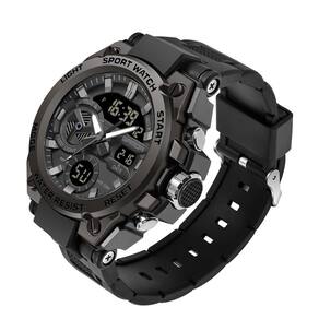 - ?Multifunções: 1. Mostrador duplo analógico e digital suporta dois fusos horários diferentes 2. Alarme 3. Luz traseira de LED (mostra a hora clara no escuro) 4. Data 5. Cronômetro 6. Opção de formato 12/24H 7. Resistente a impactos. Essas funções o tornam perfeito para todos os tipos de esportes e uso diário