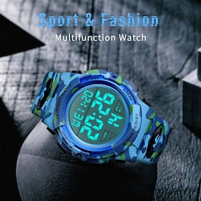 - Multifuncional: display digital, luz traseira de LED, data, alarme, 50 m à prova d'água, resistente a choques, cronômetro. Perfeito para esportes ao ar livre e em ambientes fechados, como corrida, escalada, pesca, etc.