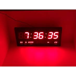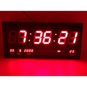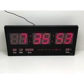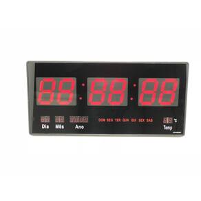 Relógio Digital - Termômetro - Calendário com Led. Tamanho grande montagem, quer numa parede ou sobre uma mesa. Led vermelho. Visualização a distância. Exibição, minutos, ano, mês, data, temperatura hora. Quatro botões na parte traseira para definir a hora e data. Ele também tem um despertador. Memória embutida para uma falha de energia para manter os dados. Construção de plástico. Adaptador de operação 110 220V AC / 5V 500mAh Apropriado para lojas, Igrejas, cafés, escritório, Ideal para Consultorios, Academias,Residências e Comercio em geral etc. O Relógio Led Digital de parede é ideal para escritórios, empresas, centros esportivos, academias, clubes, entre outros. Produto de fácil instalação, design moderno e com sistema de ajuste simples. Possui calendário automático, termômetro e alarme com música.