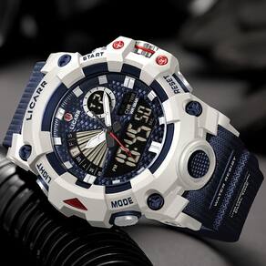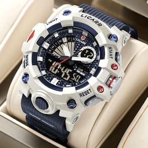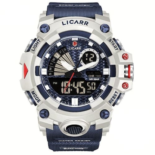 Especificações: [Material do Estojo] Construído a partir de resina sintética robusta, o estojo do relógio é sinônimo de resistência e estilo duradouro. Suas propriedades garantem um visual sofisticado enquanto suportam o desgaste diário. [Desempenho Resistente] Com resistência à água de até 5 ATM, este relógio é o companheiro ideal para atividades ao ar livre, desde uma corrida sob chuva até um mergulho. Faça muito mais sem se preocupar. [Design Esportivo] Os materiais de borracha e resina complementam um design esportivo e moderno, pensado para aventuras urbanas e atividades intensas. Versátil e estiloso, adapta-se a diferentes estilos de vida. [Movimento Precisão] Equipado com movimento de quartzo, este relógio oferece precisão inigualável e confiabilidade, garantindo que você nunca perca uma batida ou compromisso importante. [Dual Display] Tecnicamente avançado, o duplo modo de exibição eletrônica é um destaque inteligente, proporcionando acesso fácil e rápido às informações que você precisa, em qualquer situação.