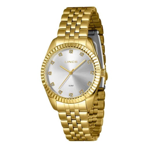 Relógio lince feminino analógico lrgj152l36 s1kx full Marca: linceGênero: femininoModelo detalhado: lrgj152l36 s1kxTipo de mostrador: analógico o visor prateado com detalhe em zircôniaMaterial da caixa: açoCor da caixa: douradoVidro: cristal mineral Material da pulseira: açoCor da pulseira: douradoResistência à água: 50 metros Este produto acompanha:Manual em portuguêsNota fiscalEmbalagem originalCertificado de garantia de 12 meses do fabricante