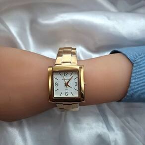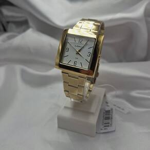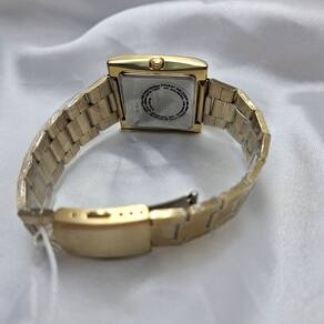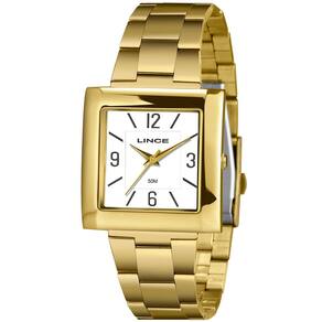Características Formato do Relógio: Retangular Composição do Vidro: Cristal mineral Material da Caixa: Aço Inox Cor da Caixa: Dourado Cor do mostrador: Branco Material da Pulseira: Aço Inox Cor da Pulseira: Dourado Mecanismo: Analógico Quartz