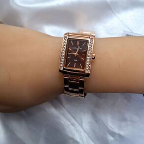Características Formato do Relógio: Retangular Composição do Vidro: Cristal mineral Material da Caixa: Aço Inox Cor da Caixa: Rosê Cor do mostrador: Marrom Material da Pulseira: Aço Inox Cor da Pulseira: Rosê Mecanismo: Analógico Quartz