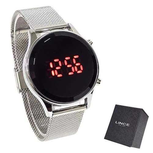 Marca: Lince Modelo: LDM4647L PXSX Tipo de relógio: Digital Gênero: Feminino Cor da caixa: Prateado Cor da pulseira: Prateado Estilo: Casual Alarme: Não Cronômetro: Não Calendário: Sim Luz: Sim – Led Vermelho Resistência à água: 5 ATM = 50 metros Tipo de fecho: Fivela de gancho Material da caixa: Aço Material da pulseira: Aço Características do vidro: Cristal mineral Tamanho da caixa: 37 mm Espessura da caixa: 10 mm Comprimento da pulseira: 22 cm Largura da pulseira: 18 mm Tampa do fundo: Pressão Peso: 70 Gramas Alimentação: Bateria Garantia do Fabricante: 12 meses Fabricante: Orient Relógios da Amazônia LTDA