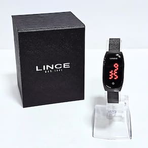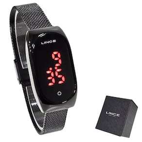 Marca: Lince Modelo: LDN4641L PXPX Tipo de relógio: Digital Gênero: Feminino Cor da caixa: Preto Cor da pulseira: Preto Estilo: Casual Alarme: Não Cronômetro: Não Calendário: Sim Luz: Sim – Led Vermelho Resistência à água: 5 ATM = 50 metros Tipo de fecho: Fivela de gancho Material da caixa: Aço Material da pulseira: Aço Características do vidro: Cristal mineral Tamanho da caixa (A x L): 39 x 21 mm Espessura da caixa: 9 mm Comprimento da pulseira: 22 cm Largura da pulseira: 12 mm Tampa do fundo: Pressão Peso: 45 Gramas Alimentação: Bateria Garantia do Fabricante: 12 meses Fabricante: Orient Relógios da Amazônia LTDA