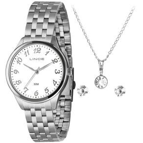 Relógio Lince Feminino Ref: Lrm4751l40 K03db2sx Prateado + Semijóia DESCRIÇÃO DO PRODUTO: Caixa: Metal Pulseira: Aço Medida da caixa: 40 mm Vidro: Cristal Mineral Resistência à água: 50m Funções: Analógico Fundo: Pressão Alimentação do maquinário: Bateria Mostrador Branco com todos os números + Corrente, Pingente e Par de Brincos Semijóia de 1 Ano Marca: Não Informado Ean: 7891529986042