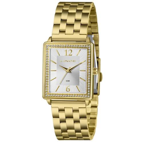 Relógio Lince Feminino Ref: Lqg4810l28 S2kx Retangular Dourado DESCRIÇÃO DO PRODUTO: Caixa: Metal Pulseira: Aço Medida da caixa: 28 mm x 33 mm Vidro: Cristal Mineral Resistência à água: 50m Funções: Analógico Mostrador Prateado com números e pedras Fundo Alimentação do maquinário: Bateria Maquinário Japonês de 1 Ano Marca: Não Informado