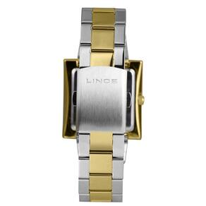 Relógio Lince Feminino Ref: Lqt4767l34 P2sk Retangular Bicolor DESCRIÇÃO DO PRODUTO: Caixa: Metal Pulseira: Aço Medida da caixa: 34 mm x 35 mm Vidro: Cristal Mineral Resistência à água: 50m Funções: Analógico Mostrador preto com números Fundo Dourado com Prateado de 1 Ano Marca: Não Informado Ean: 7891529233603