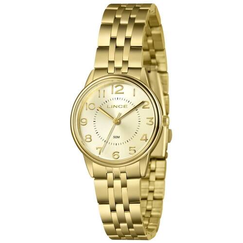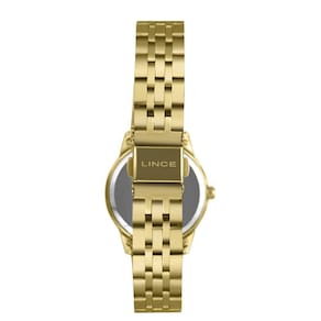 Relógio Lince Feminino Ref: Lrgm027l32 C2kx Casual Dourado DESCRIÇÃO DO PRODUTO: Caixa: Metal Pulseira: Aço Medida da caixa: 32 mm Vidro: Cristal Mineral Resistência à água: 50m Funções: Analógico Mostrador Dourado com todos os números Fundo Alimentação do Maquinário: Bateria Maquinário Japonês de 1 Ano