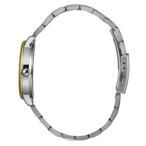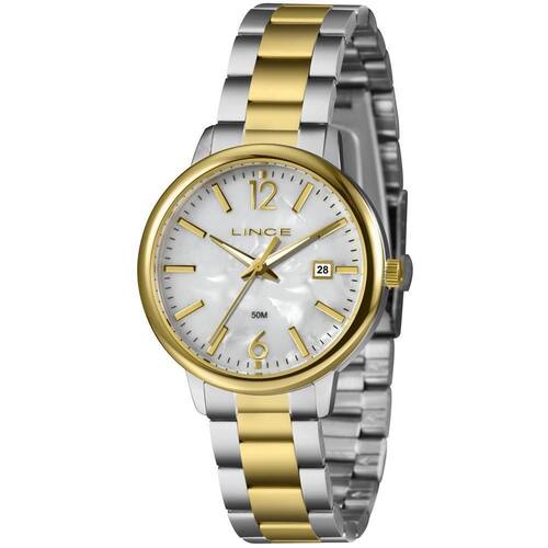 Caixa: Metal Pulseira: Aço Medida da caixa: 36 mm Vidro: Cristal Mineral Resistência à água: 50m Funções: Analógico, Calendário Mostrador estilo madreperola branco com números Fundo de Pressão Alimentação do Maquinário: Bateria Maquinário Japonês Praetado com Dourado