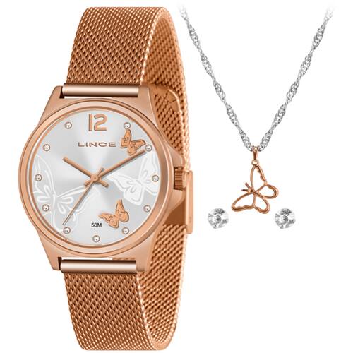 Descrição LRR4729L KP67S2RX RELOGIO DE PULSO ANALOGICO FEMININO LINCE Resistência à água 50 Metros Medida de Caixa 37 mm Material do Vidro Cristal Mineral Funcionamento Bateria Gênero Feminino Garantia do Fabricante 01 (um) ano Material da Caixa Metal Material da Pulseira Aço Mecanismo Analógico Forma Redonda ou Linhas Curvas Mostrador Claro Cor Rosé Marca: Lince