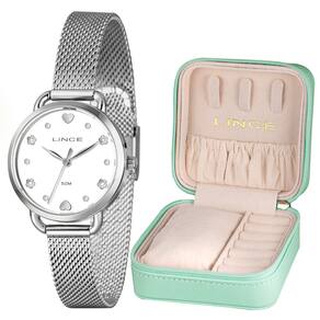 Relógio LINCE KIT verde água prata branco flor LRMH225L32 B1SX