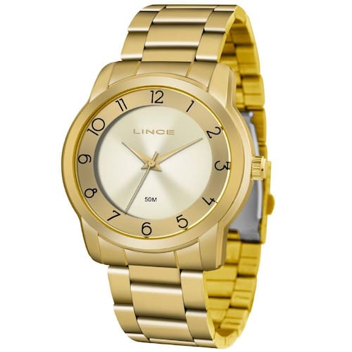 Relógio Lince LRG4590L C2KX Quartz Gênero: Feminino Visor: Dourado Vidro: Cristal Mineral Funções: Analogica Pressão: 50M Características: com caixa Monel e pulseira Aço inoxidável Diâmetro da caixa: 42mm Garantia: 1 ano