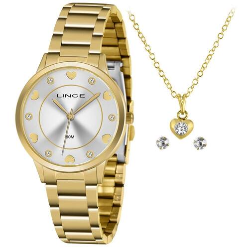 Marca: Lince Gênero: Feminino Visor: Champanhe, Prata Linha: Funny Vidro: Cristal mineral Funções: Pressão: 50m Características: com caixa Dourado e pulseira em Aço Diâmetro da Caixa: 38 mm