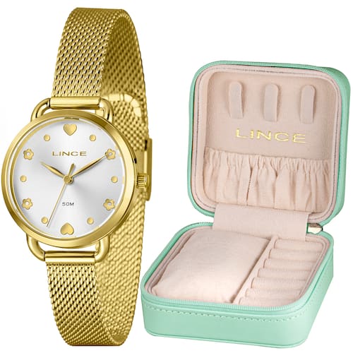 Características: com caixa dourada e pulseira em mesh