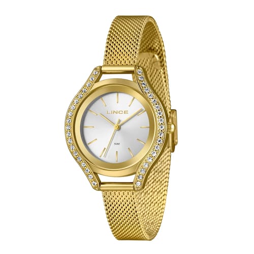 - Material da pulseira: Aço Dourado tipo esteira / mash