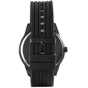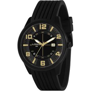 Características Formato do Relógio: Redondo Composição do Vidro: Cristal mineral Material da Caixa: Aço Inox Cor da Caixa: Preto Cor do mostrador: Dourado, Preto Material da Pulseira: Borracha Cor da Pulseira: Preto Mecanismo: Analógico Quartz