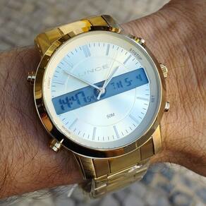 Relogio lince masculino dourado anadigi mag4489l c1kx Relogio masculino digital e analogico dourado de aço inox a prova dagua