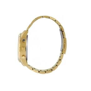 Cor do aro: dourado Cor da caixa: dourado Cor da pulseira: dourado Cor do mostrador: dourado