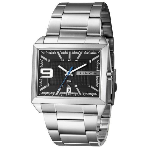 Relógio Lince Masculino Ref: Mqm4752l46 P2sx Retangular Prateado DESCRIÇÃO DO PRODUTO: Marca: Lince Gênero: Masculino Vidro: Cristal Mineral Funções: Analógico, Calendário Resistência à Água: 50 m Características: com caixa metal e pulseira de Aço Inoxidável Diâmetro da Caixa: 46 mm x 36 mm Fundo de Pressão Alimentação do Maquinário: Bateria Mostrador preto com número Garantia de 1 ano