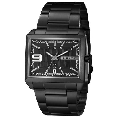 Relógio Lince Masculino Ref: Mqn4752l46 P2px Retangular Black DESCRIÇÃO DO PRODUTO: Marca: Lince Gênero: Masculino Vidro: Cristal Mineral Funções: Analógico, Calendário Resistência à Água: 50 m Características: com caixa metal e pulseira de Aço Inoxidável Diâmetro da Caixa: 46 mm x 36 mm Fundo Alimentação do Maquinário: Bateria Mostrador preto com número de 1 ano Marca: Não Informado Ean: 7891529051931