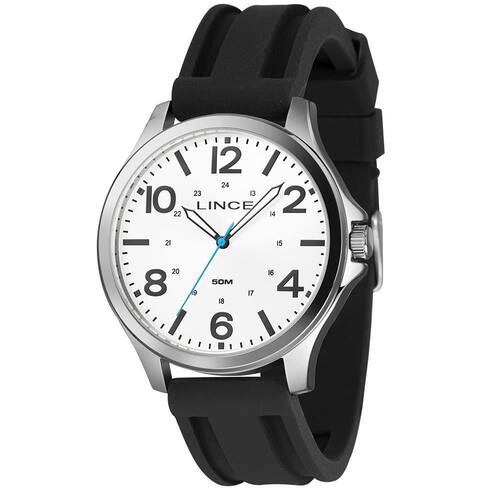 Relógio Lince Masculino Ref: Mrpm017l46 B2px Esportivo Prateado DESCRIÇÃO DO PRODUTO: Marca: Lince Gênero: Masculino Vidro: Cristal Mineral Funções: Analógico Resistência à Água: 50 m Características: com caixa metal e pulseira de Silicone Preta Diâmetro da Caixa: 46 mm Fundo Alimentação do Maquinário: Bateria Mostrador branco com números de 1 ano Marca: Não Informado