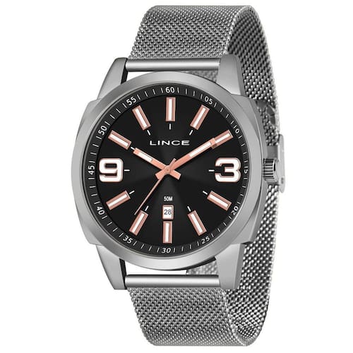 Características: com caixa Prata e pulseira em aço tipo mesh