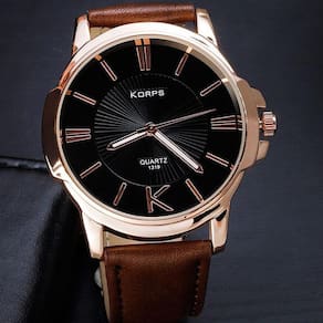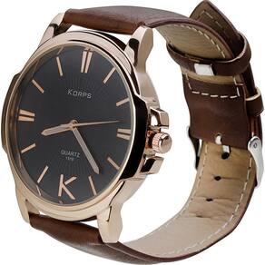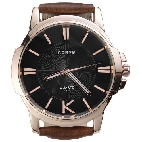 Relógio Luxo Korps 1319 Bronze Fundo Preto Pulseira Couro