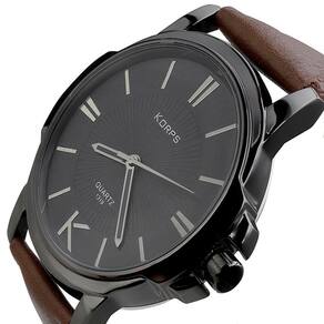 Marca: Korps Modelo: 1319 Referência do Modelo: 1319PPM Cor de Fundo: Preto Cor da Caixa: Preta Inox Cor da Pulseira: Marrom Couro Estilo: Elegante Luxo Casual Material da Caixa: Aço Inoxidável Tipo Mostrador: Analógico Movimento: Quartzo (Bateria) Formato da Caixa: Redondo Espessura da Caixa: 8mm Diâmetro da Caixa: 45mm Peso Líq: 46g Fechamento: Fivela Material da Pulseira: Couro Natural Comprimento da Pulseira: 25cm Largura da Pulseira: 22mm