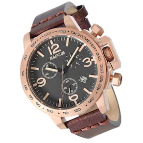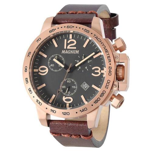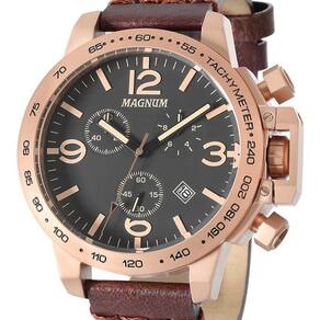 Relógio Magnum Analógico Marrom Masculino MA34147U - Linha: Sport - Garantia: 12 meses - Conteúdo da embalagem: 1 relógio, manual, certificado de garantia e nota fiscal Características - Vidro: Cristal Mineral - Material da caixa: Aço - Cor da caixa: Bronze - Material da pulseira: Couro - Cor da pulseira: Marrom - Diâmetro da caixa: 5 cm - Mecanismo: Quartz - Funções: Analógico / Calendário / Cronógrafo Resistência à água - 10 atm - Pode lavar as mãos: Sim - Pode lavar em água corrente: Sim - Pode usar em piscinas: Sim - Pode usar em mergulhos profundos: Não - Pode tomar banho: Não