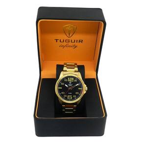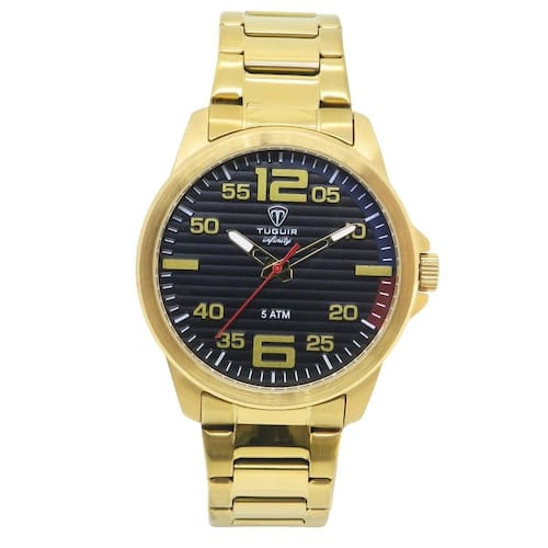 Relógio Masculino de Aço Tuguir ógico Infinity 9169A Dourado e Preto Relógio Masculino de Aço Tuguir ógico Infinity 9169A Dourado e Preto Marca: Tuguir Categoria: ógico ógico: Sim 1 Horário Ponteiros Fluorescentes: Não Digital: Não Luz: Não Resistente à Água: 5 ATM Pode ser para nadar no raso, por pouco tempo submerso - Respingos: Sim - Chuva: Sim - Lavar Carro: Sim - Lavar Louça: Sim - Natação: Sim - Mergulho: Não Característica do Vidro: Cristal Mineral Tipo de Fecho: Dobrável com Botão Cor da Caixa: Dourado Material da Caixa: Aço Formato da Caixa: Redondo Diâmetro da Caixa: 43,00 mm Espessura da Caixa: 9,00 mm Cor da Pulseira: Dourado Material da Pulseira: Aço Largura da Pulseira: 20,00 mm Comprimento Máximo da Pulseira: 280,00 mm Alimentação: Bateria Interna Peso Líquido: 0,110 Kg Modelo: Infinity 9169A Cor Predominante: Dourado Cor Diferencial: Preto : 12 Meses Conteúdo da Embalagem: 01 Relógio 01 Embalagem 01 Termo de Marca: Não Informado
