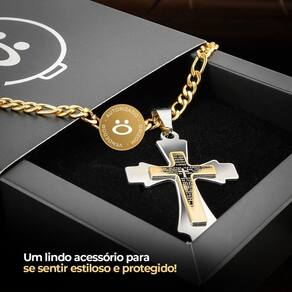 Pingente Cruz com Oração do Pai Nosso - Fé e Estilo Unidos: - Material: Aço Inoxidável Banhado - Design: Cruz com Oração Pai Nosso interna - Significado: Proteção e Espiritualidade - Acabamento: Detalhes finos e delicados
