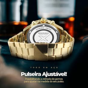 Relogio Masculino Aço Dourado Inoxidavel + Caixa Premium Relógio Masculino Orizom Spaceman X - Analógico com Caixa Premium Descrição do Produto: